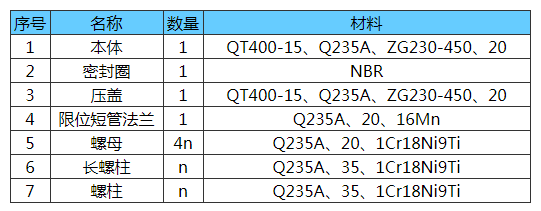 VSSJA-1型(xíng)單法蘭限位伸縮(suō)接(jiē)頭材料表